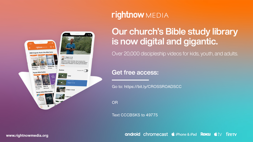 We are giving you and anyone connected with Crossroads Christian Church – a FREE membership with RightNow Media.